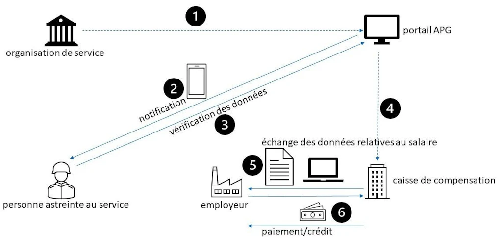 - Le traitement de la demande APG par la personne astreinte au service peut se faire numériquement, sur un téléphone mobile/une tablette ou sur l’ordinateur. La voie postale reste exceptionnellement possible sur demande.